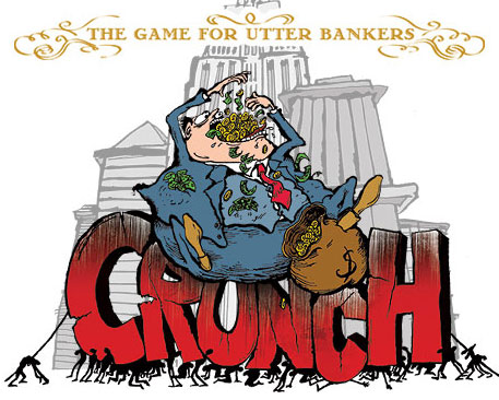 Crunch is a card game for 2 to 4 players that allows you to experience the upside of down. Placed in the role of a global banking CEO, you have to juggle the conflicting demands of your ailing bank and your flourishing bank account.